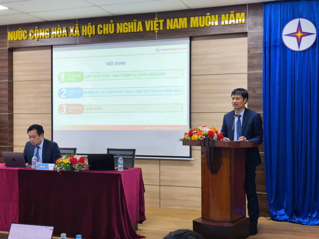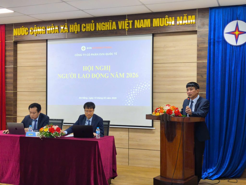 Hội nghị Người lao động năm 2026 của Công ty Cổ phần EVN Quốc tế đã kết thúc thành công, thể hiện sự thống nhất cao của tập thể CBNV, tiếp tục phát huy mối quan hệ phối hợp chặt chẽ giữa Công đoàn và chuyên môn, quyết tâm vượt qua khó khăn, phấn đấu hoàn thành tốt kế hoạch sản xuất kinh doanh năm 2026.